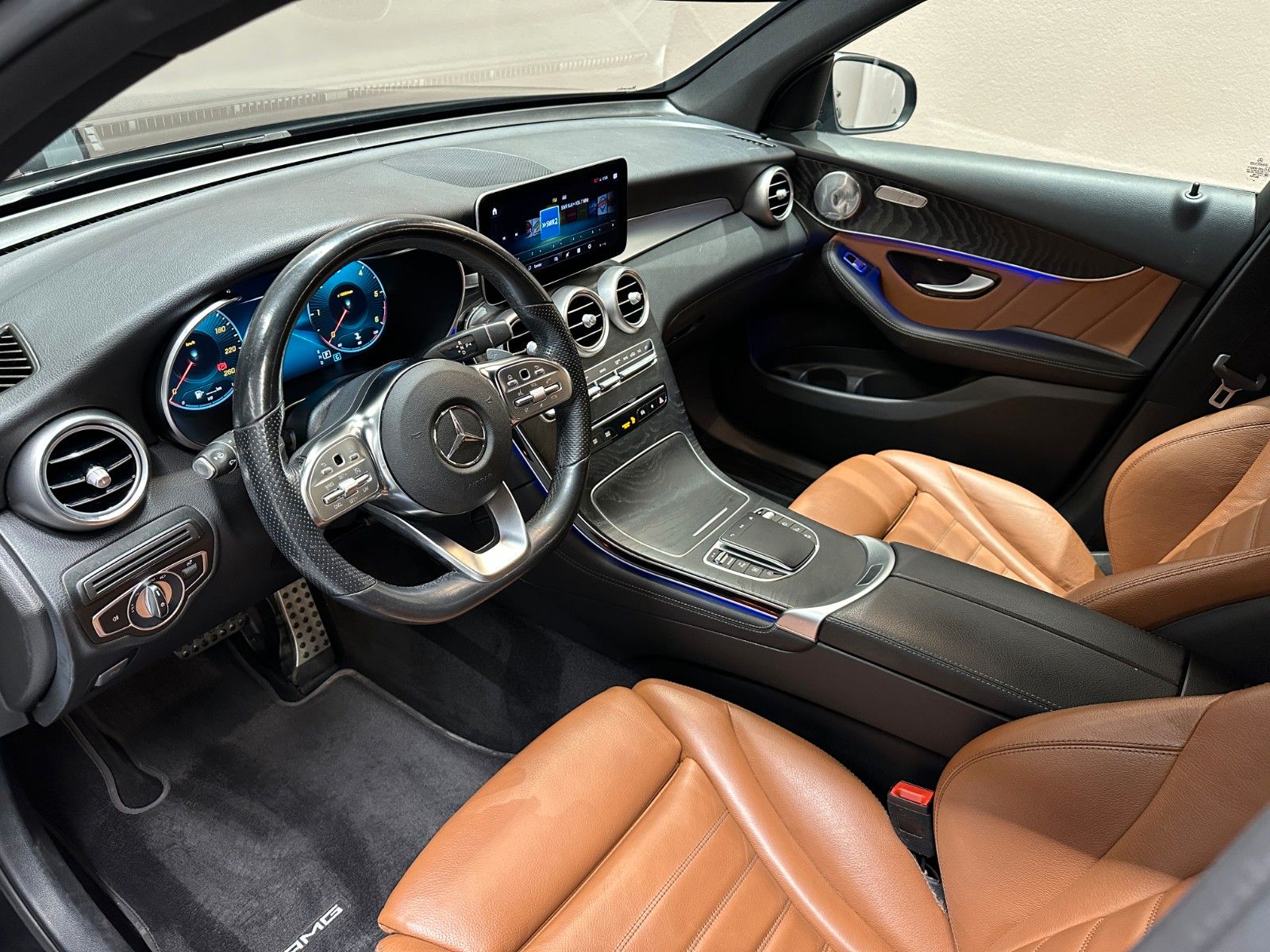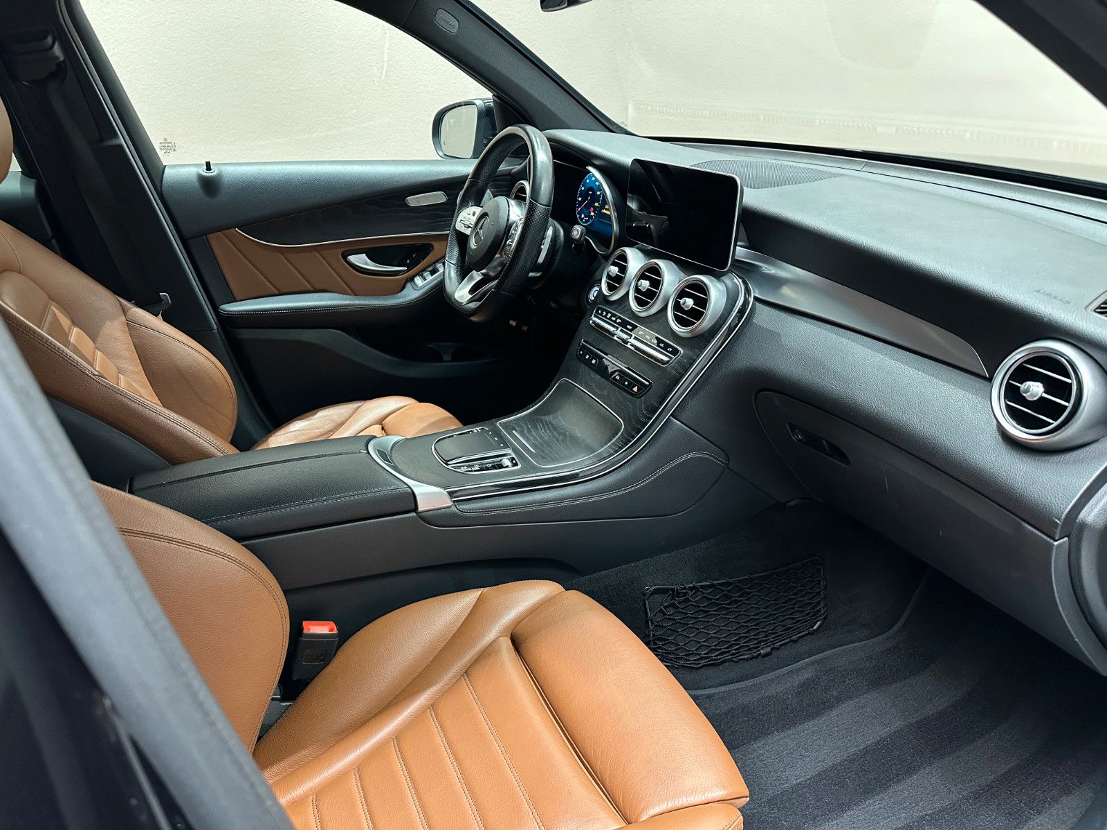 Erleben Sie deutsche Ingenieurskunst mit diesem gepflegten Mercedes-Benz GLC 400 aus dem Jahr 2019. Der leistungsstarke 6-Zylinder Dieselmotor mit 330 PS und Allradantrieb bietet souveräne Fahrleistungen bei gleichzeitiger Effizienz.Das Fahrzeug überzeugt mit seiner umfangreichen Ausstattung: Von der 2-Zonen-Klimaautomatik über das Navigationssystem mit Touchscreen bis hin zum digitalen Cockpit bleibt kein Wunsch offen. Die schwarze Metallic-Lackierung harmoniert perfekt mit dem braunen Lederinterieur. Für maximalen Komfort sorgen elektrisch verstellbare Sitze mit Lendenwirbelstütze und Sitzheizung.