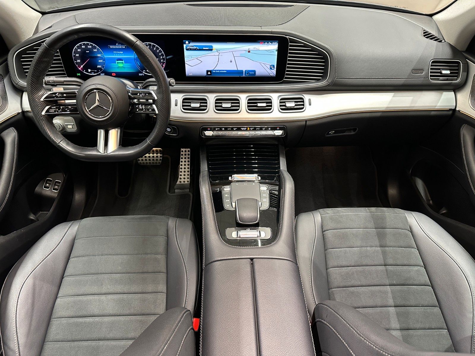 Entdecken Sie den Mercedes-Benz GLE 400 als vielseitigen Premium-SUV mit Hybridantrieb. Dieses gepflegte Fahrzeug aus erster Hand wurde erstmals 2024 zugelassen und präsentiert sich in elegantem Grau-Metallic mit schwarzer Teillederausstattung.Interne Nr.61