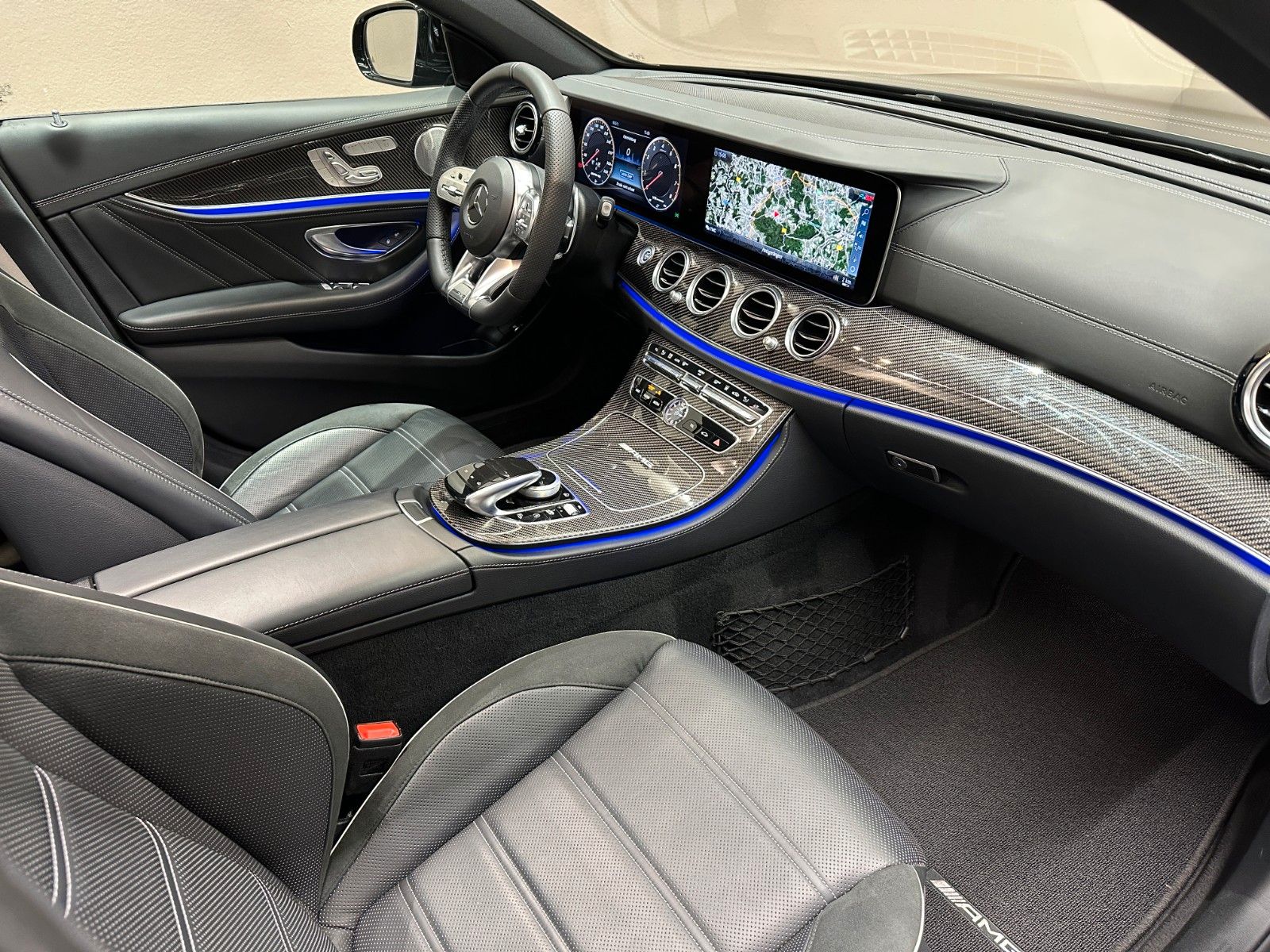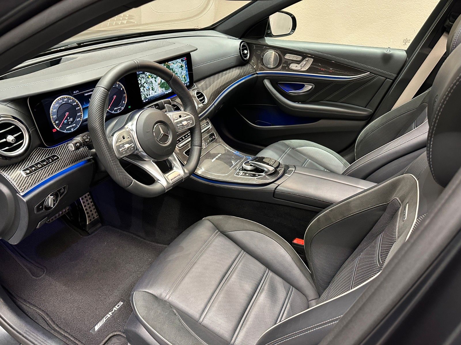 Entdecken Sie diesen exklusiven Mercedes-Benz E 63 AMG Kombi aus dem Jahr 2018. Der leistungsstarke V8-Motor mit 612 PS und Allradantrieb bietet beeindruckende Fahrleistungen bei gleichzeitig hoher Alltagstauglichkeit. Das Fahrzeug präsentiert sich in elegantem Schwarz mit schwarzer Lederausstattung und verfügt über ein Panorama-Glasdach sowie ein umfangreiches Sportpaket.Interne Nr.84