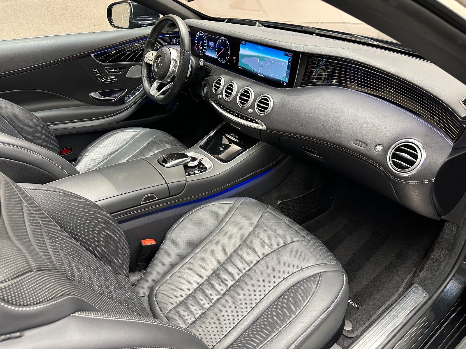 Erleben Sie puren Luxus unter freiem Himmel mit diesem gepflegten Mercedes-Benz S 560 Cabrio aus 2019. Der leistungsstarke V8-Motor mit 469 PS sorgt für souveräne Fahrleistungen, während die Heckantriebskonfiguration für optimale Fahrdynamik steht. Das schwarze Exterieur mit Metallic-Lackierung harmoniert perfekt mit dem hochwertigen schwarzen Lederinterieur. Als Erstbesitzerfahrzeug präsentiert sich dieser S 560 mit lückenloser Servicehistorie in einem tadellosen Zustand.Interne Nr.24